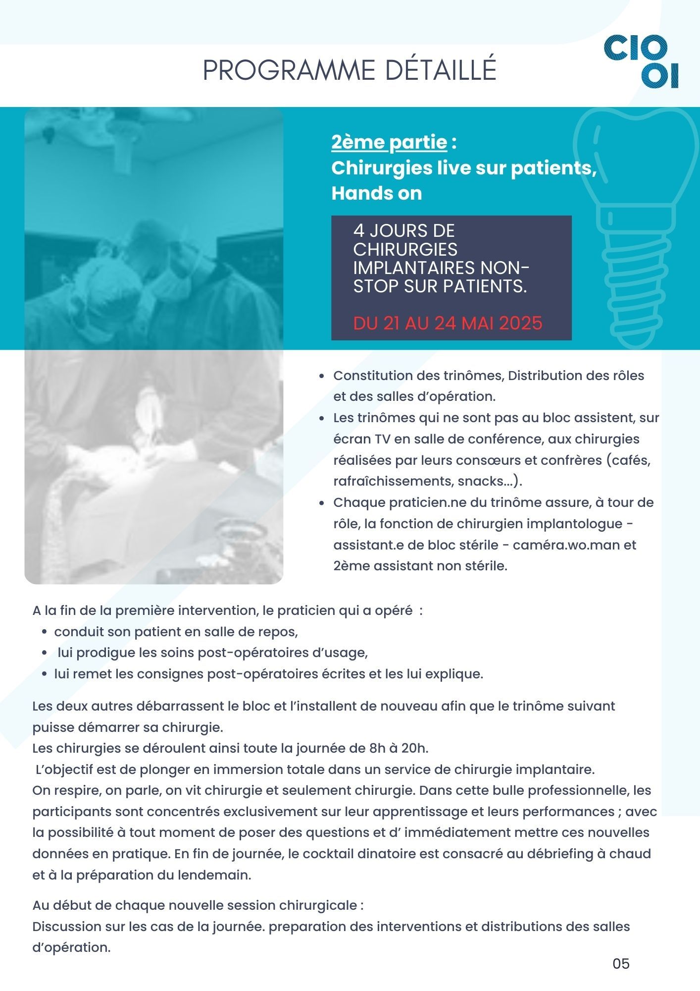 Nous garantissons pour chaque participant, la pose de 5 implants minimum, en chirurgie guidée, ou à main levée.